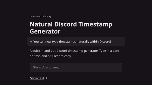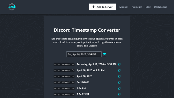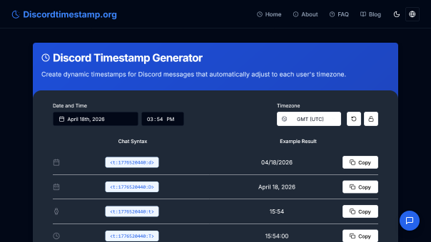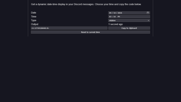 Generate timestamp indicators for Discord chat messages